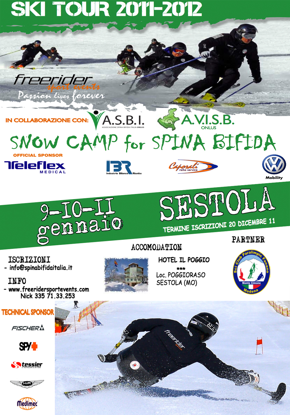 Amici miei e della Freerider si riparte! Domenica sera si raggiunge Sestola, sull'Appenino modenese. Ci si deve preparare al meglio per accogliere lunedì mattina dieci ragazzi con spina bifida che grazie a Nicola, Fabrizio, Kino, Pietro, "Tomba" e tutta la banda trascorreranno tre giorni sulla neve. Obiettivo quello di sempre: sciare in autonomia! Con noi ci saranno l'Associazione Spina Bifida Italia, l'Associazione Veneta Idrocefalo e Spina Bifida e gli operatori della polizia di Stato e pochi altri. Enti e Istituzioni? Come le carrozzine. Stanno a guardare...